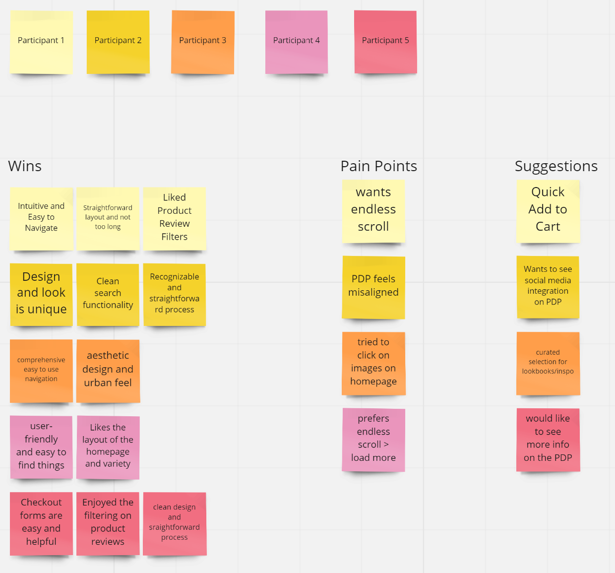 Once I had my high-fidelity prototype working, I recruited 5 participants to test the prototype and observe how they completed each task. From the results and notes I gathered I created an affinity map to prioritize revisions and discover common patterns and pain points. From the affinity map we were able to discover and improve the following revisions: